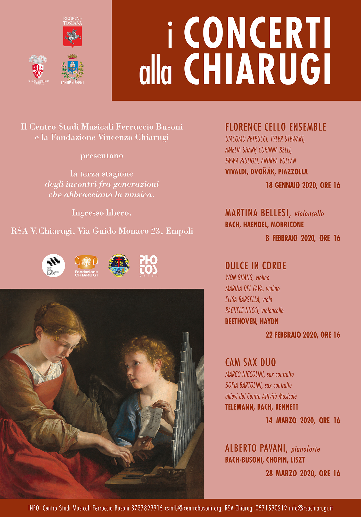 Tornano gli appuntamenti con la bella musica alla Fondazione Vincenzo Chiarugi della Misericordia di Empoli con la terza edizione de “I Concerti alla Chiarugi”, la manifestazione musicale organizzata in collaborazione con il Centro Studi Musicali Ferruccio Busoni e l’Associazione Photos Onlus.