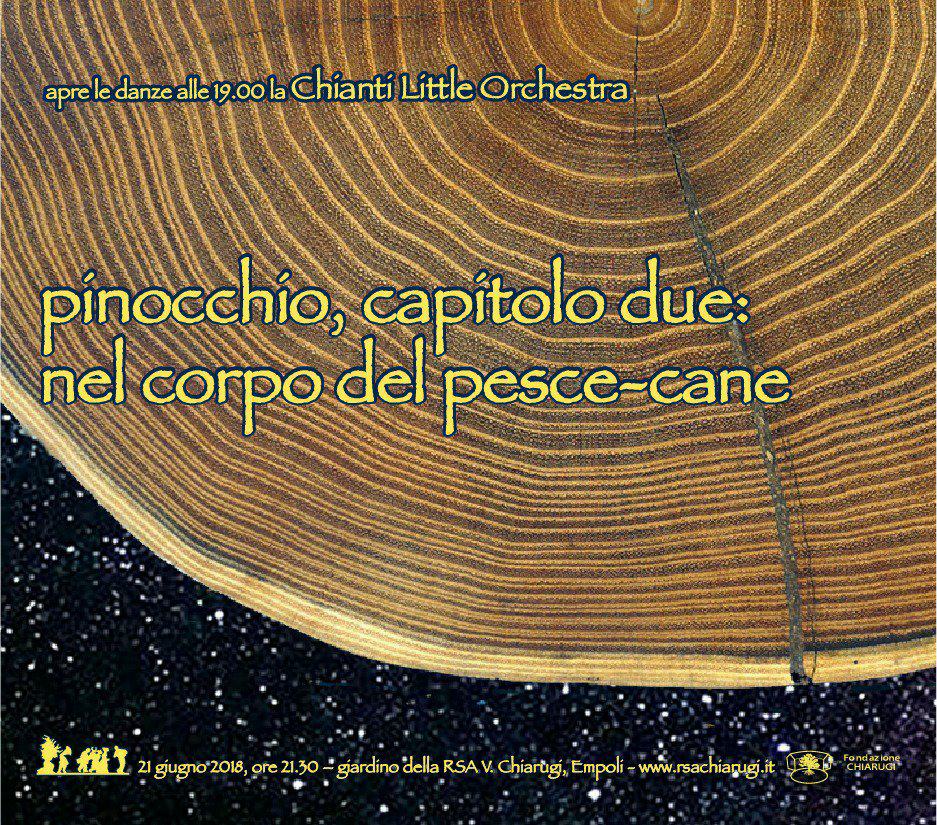Dalle 19.00, nel giardino, musica con i Chianti Little Orchestra, aperitivo e alle 21.30 “Pinocchio, capitolo due: nel corpo del pesce-cane”. Ingresso libero!